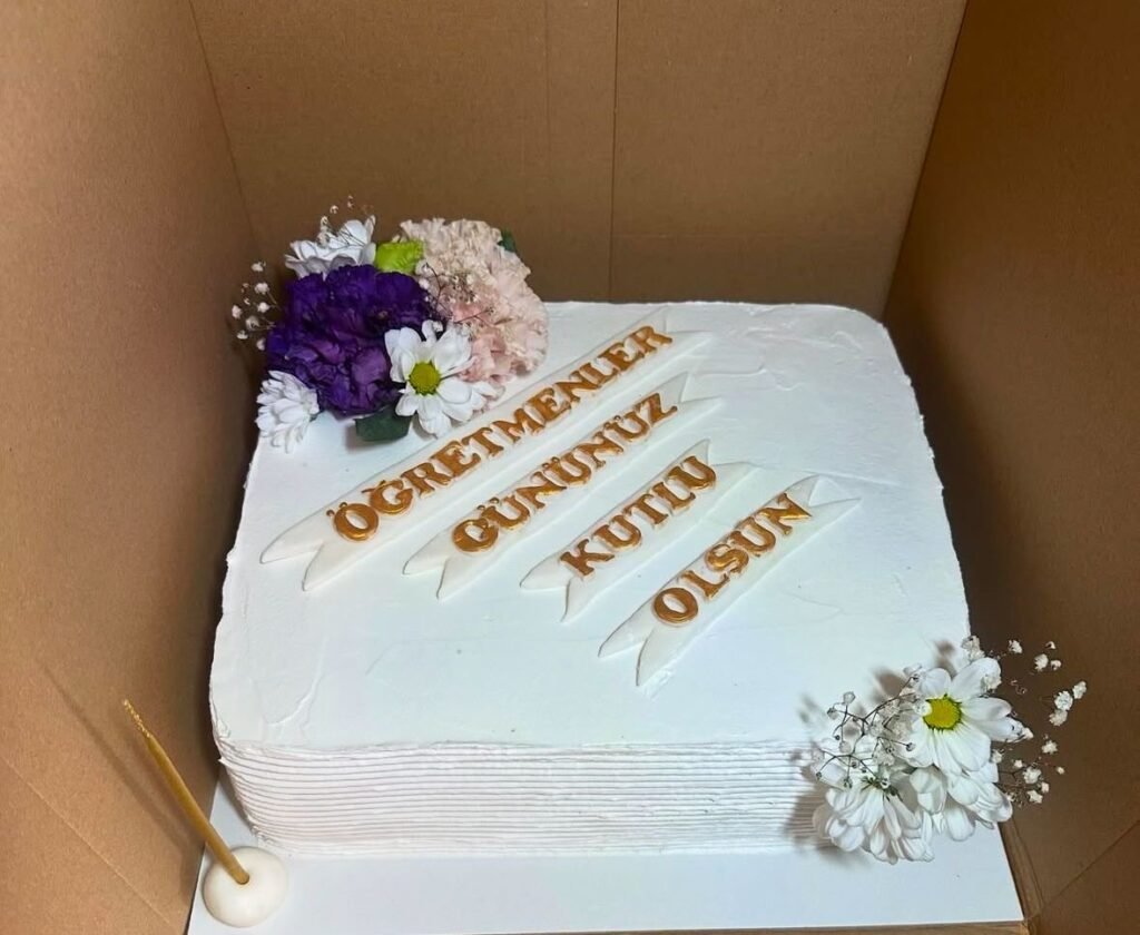 Okulumuza, öğretmenimizin doğum günü için harika bir pasta yaptırdık. Tam istediğimiz gibi oldu. Ellerinize sağlık.